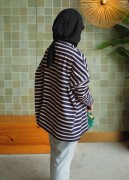 The unique cutting design adds a stylish edge, making it more than just a basic striped shirt. Crafted from high-quality cotton fabric, it feels soft, breathable, and gentle on the skin