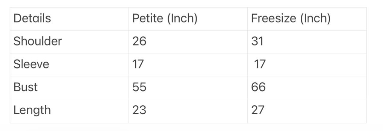 Sizes: Petite & Free-Size